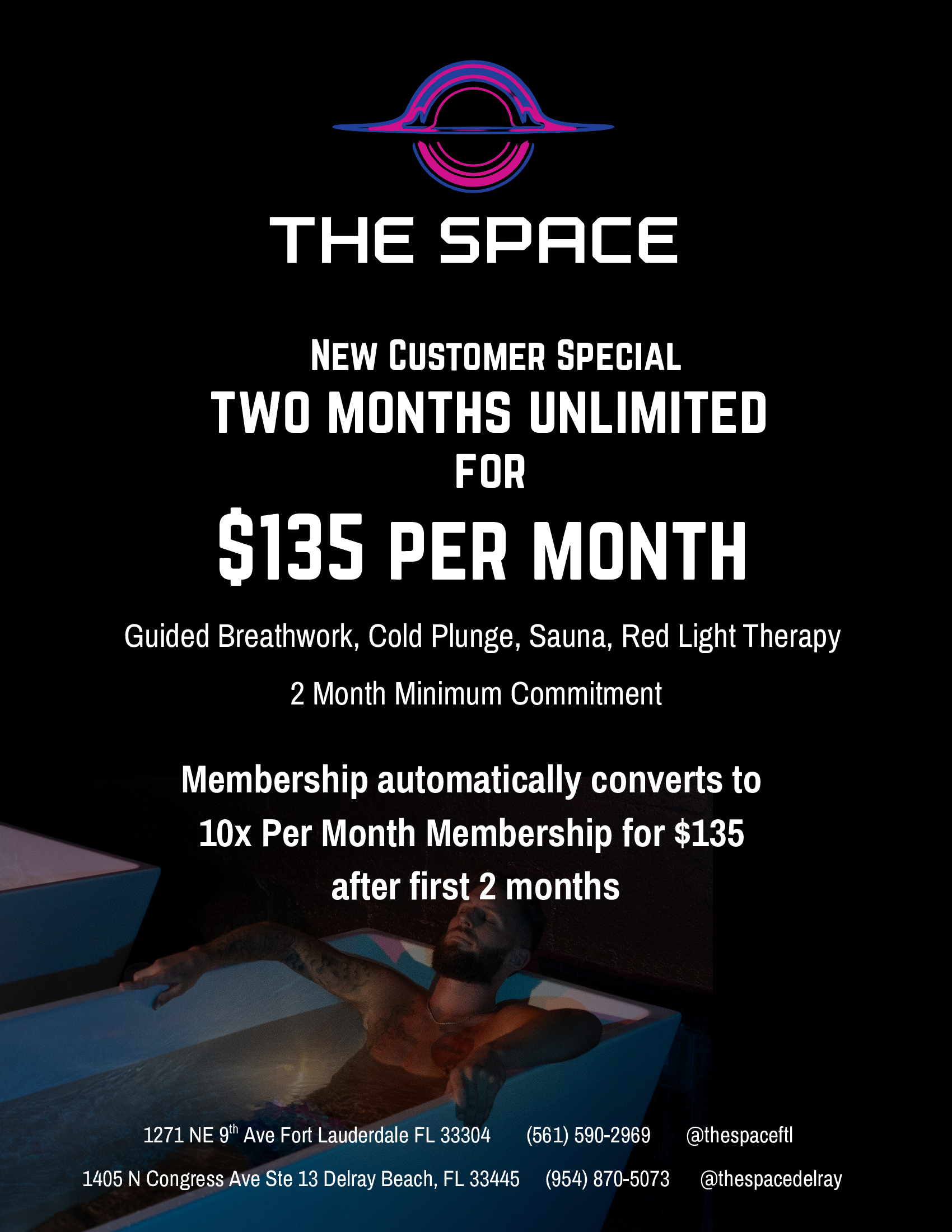 2 sessions/month of Breathwork, Cold Plunge, Sauna, and Red Light Therapy
